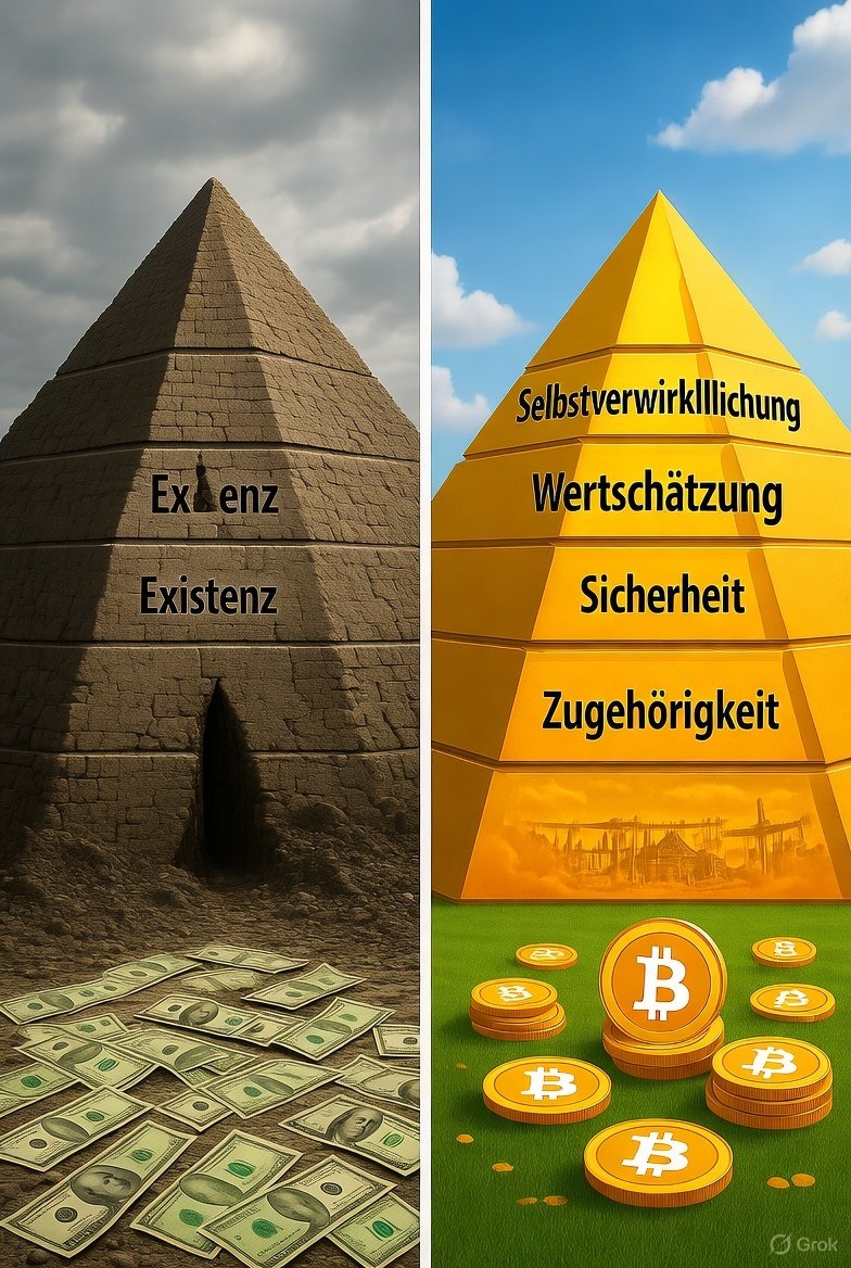 In einer Welt, die von wirtschaftlichen Unsicherheiten geprägt ist, suchen Menschen nach Wegen, ihre grundlegenden Bedürfnisse zu sichern. Abraham Maslows Bedürfnispyramide, ein klassisches Modell aus der Psychologie, beschreibt, wie wir uns schrittweise von elementaren Überlebensbedürfnissen zu höheren Zielen entwickeln. Doch was, wenn eine Technologie wie Bitcoin dieses Modell grundlegend verändert? In diesem Artikel erkläre ich Maslows Pyramide und argumentiere, warum Bitcoin ihr Fundament stärken könnte. Ich gehe darauf ein, wie Bitcoin unser Verständnis von Geld revolutioniert, als global wertvollstes Gut dient, um Arbeit in die Zukunft zu transportieren, und langfristigen Wertaufbau ermöglicht. Zudem beleuchte ich, wie es nachhaltiges Konsumieren belohnt – im Kontrast zum aktuellen Fiat-Geldsystem.